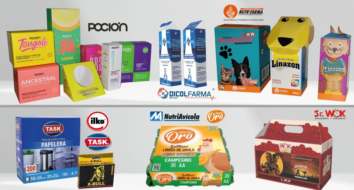 Son empaques fabricados en cartón impresos y troquelados que protegen el producto y fortalecen la imagen de marca en el punto de venta.